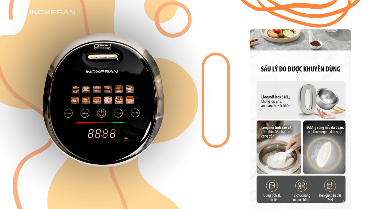 Bên cạnh những thiết bị giải phóng sức lao động kể trên, việc chăm sóc sức khỏe chủ động từ bữa ăn cũng là xu hướng chủ đạo của năm 2026. Nồi cơm điện giảm đường INP6003 từ INOXPRAN là mảnh ghép cuối cùng hoàn thiện hệ sinh thái gia dụng thông minh của gia đình bạn.